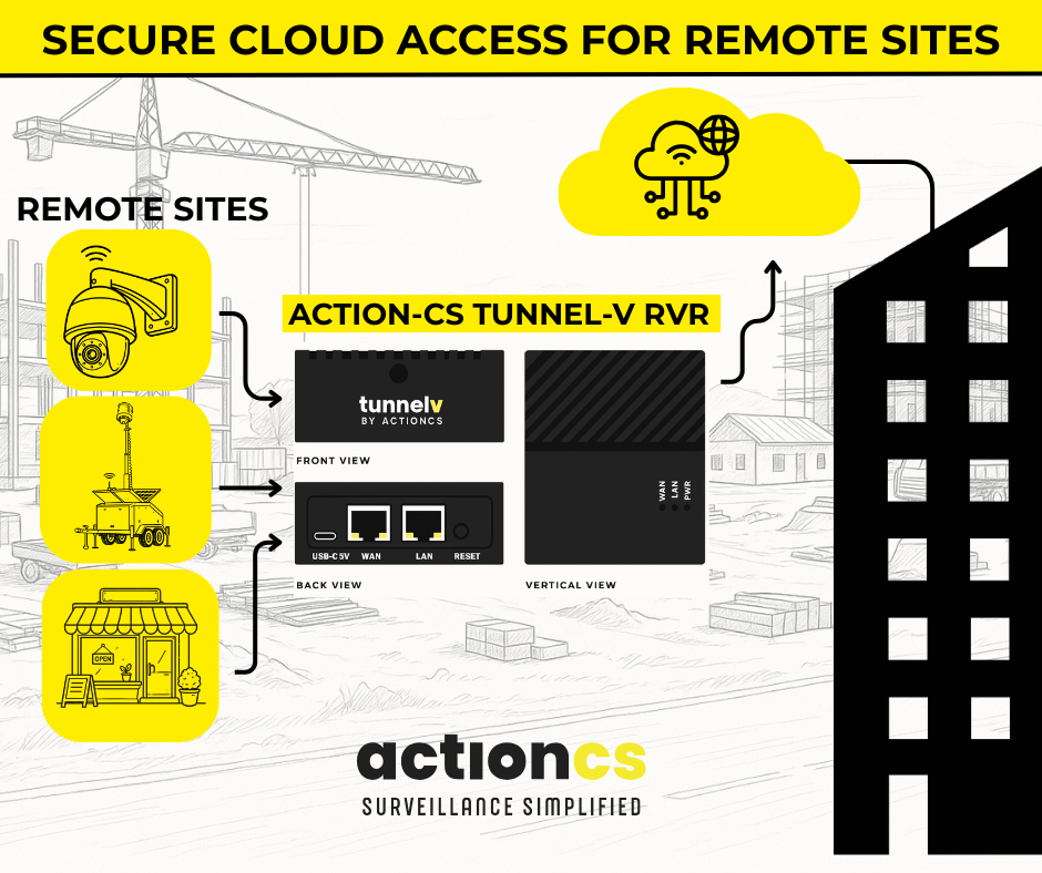 The Action-CS Tunnel-V RVR provides a simple and secure way to connect remote surveillance systems to the cloud, enabling centralized management and reliable connectivity for sites that would otherwise operate in isolation.